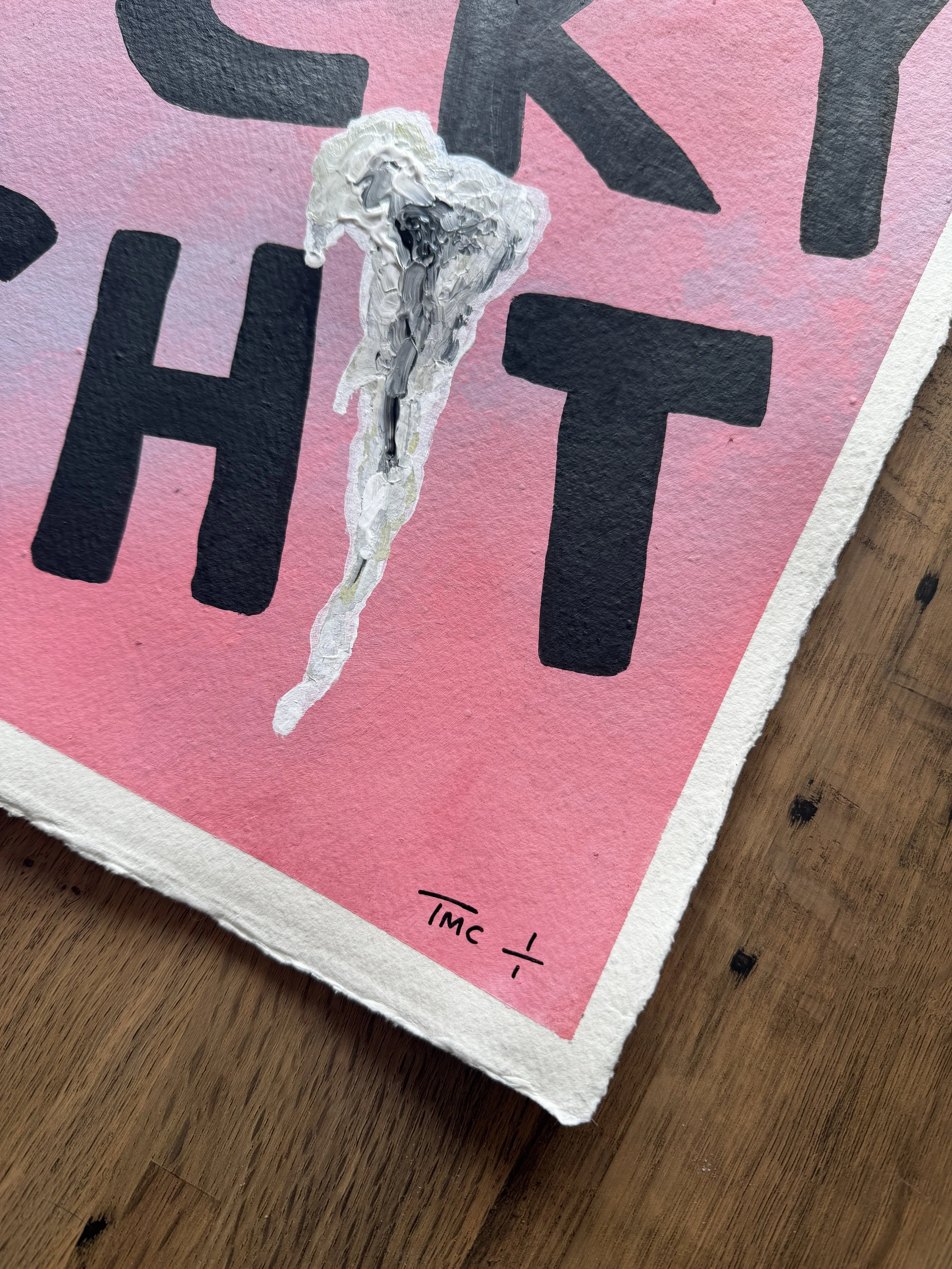 My series ‘LUCKY SH*T’ flips that superstition, turning the stuff everyone dodges into bold, ironic paintings that wear a splatter like a badge of fortune. Part humour, part hope.